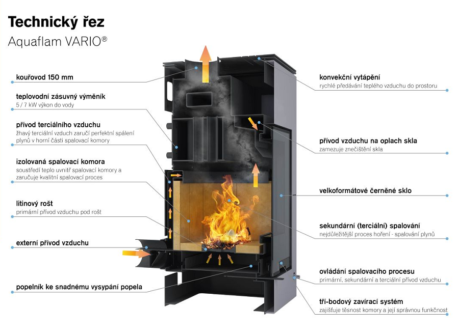 Zaisťuje inteligentný prísun primárneho, sekundárneho a terciárneho vzduchu do spaľovacej komory.