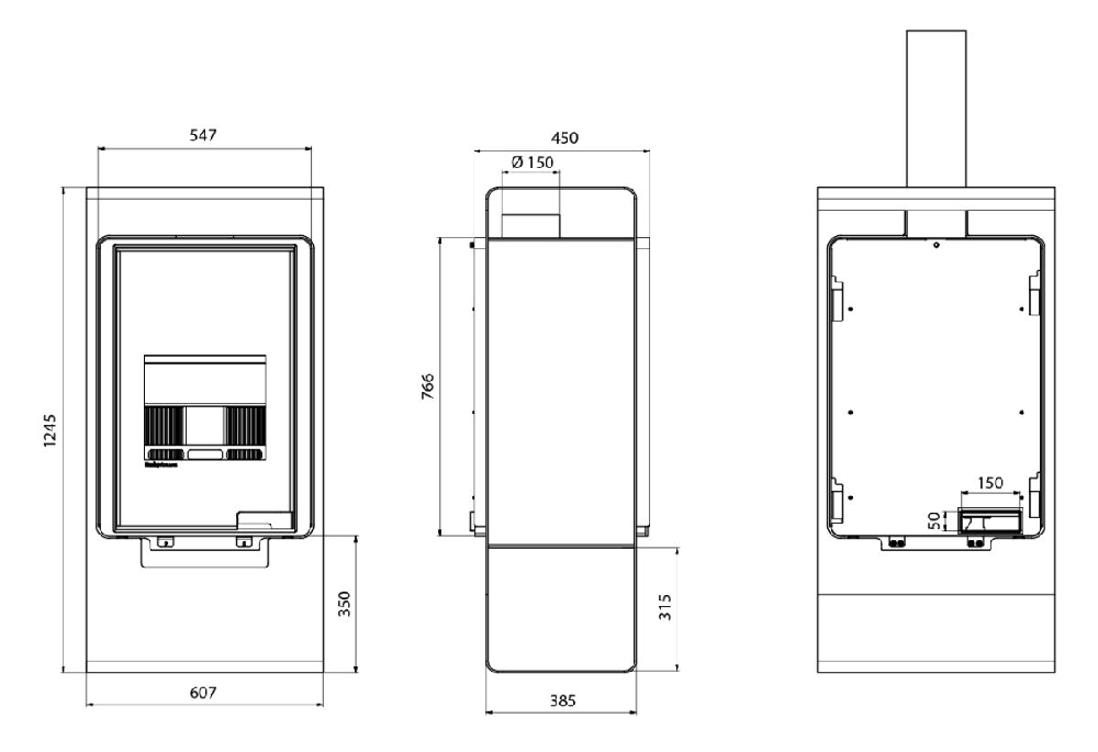 Kachle sú zvarené z oceľových plechov hrúbky 2 – 5 mm. V strednej časti kachlí je spaľovacia komora, ktorej čelná strana je tvorená prikladacími dvierkami. V dvierkach je usadené veľkoplošné špeciálne sklo, ktoré odoláva vysokým teplotám až 800 °C. Spaľovací priestor je obložený vermikulitovými tvarovkami. Tvarovky nie sú spojené žiadnou výmazovou hmotou. Na dne spaľovacej komory je liatinový rošt. Pred roštom je umiestnená zábrana proti vypadávaniu paliva a jeho zosúvaniu na čelné sklo. Kachle sú riešené ako dvojplášťové s vertikálnym odvodom spalín. Priemer dymovodu je 150 mm. Opláštenie kachlí je vyhotovené z oceľového plechu.